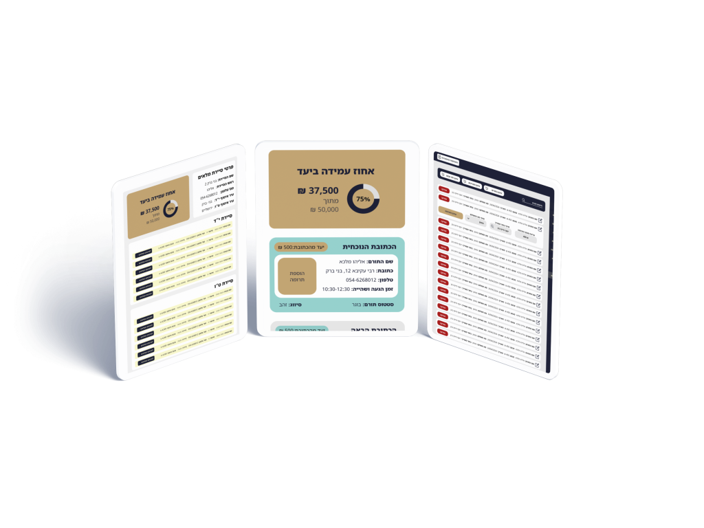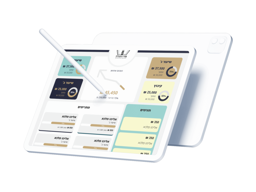 ניהול עמודי תרומה מותאמים אישית, מסלולי תרומה מגוונים, ומסך אונליין דינמי ליצירת אווירת התרמה מרשימה.